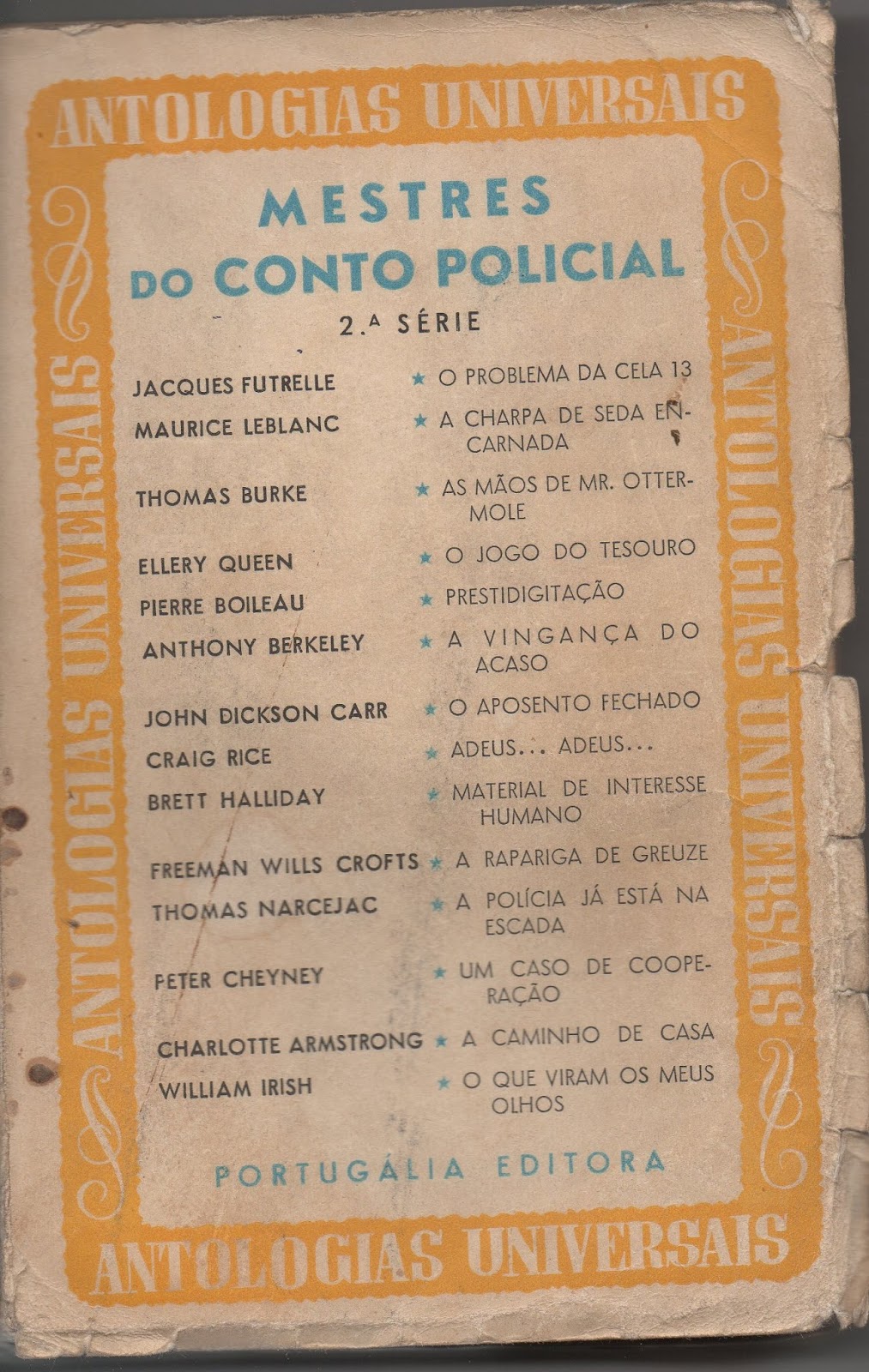 Sinopse: Contos de Jacques Futrelle, Maurice Leblanc, Thmas Burke, Ellery Queen, Pierre Boileau, Jon Dickson Carr, entre muitos outros...